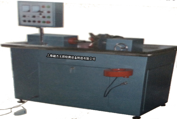 汽车发动机喷油嘴控制阀芯和控制阀套专用荧光磁粉探伤设备。工件的周向采用磁轭法、纵向采用线圈感应磁化法,为非接触式磁粉探伤设备,配专用退磁线圈,采用通过远离法退磁。 磁化方式:周向、纵向、复合磁化; 周向磁化磁势:AC:0~12000AT; 纵向磁化磁势:AC:0~12000AT; 电极间距:0~150mm;气动夹紧; 工作方式:手动、自动。