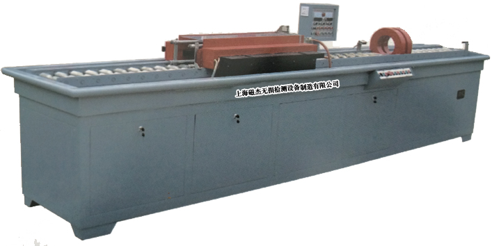 独特的送料机构,工件通过“V”型辊道传输,边运行边转动。 周向磁化采用极靴法,纵向磁化采用线圈感应法。 极靴间距:80~200mm,可调。 纵向磁化线圈直径:Φ250mm。 探伤速度:150mm/秒;可检测直径:80~180mm。